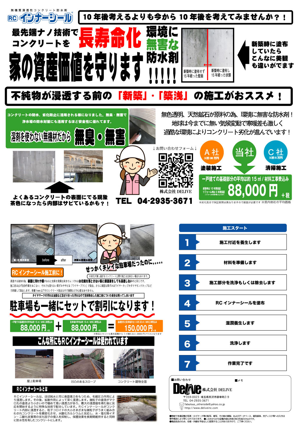一般家庭向け施工RCインナーシールチラシの確認出来ます